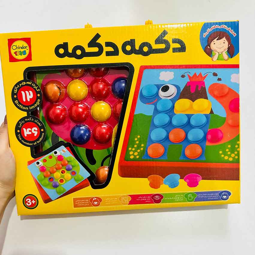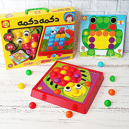 در بین دکمههای رنگی دو دکمهی طرح چشم هم وجود دارد که از آنها میتوان برای درست کردن حیوانات و تجسم بهتر آنها استفاده کرد و به عنوان یک بازی فکری برای کودک سه سال به بالا فوق العاده است.