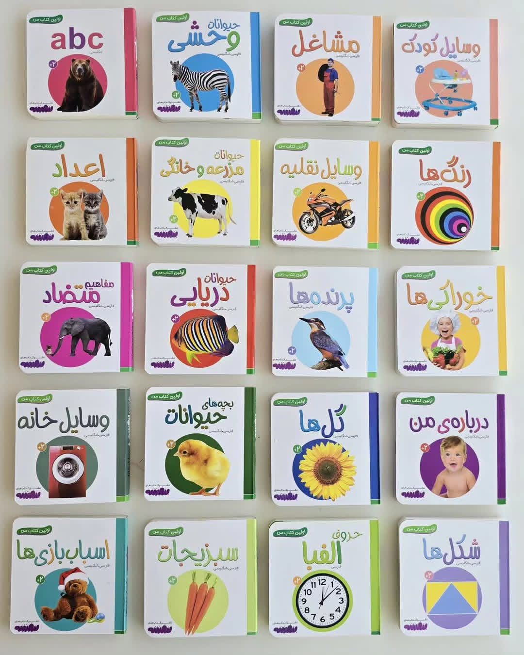 کتاب های این مجموعه آموزشی هستند و در هر صفحه یک تصویر و یک کلمه وجود دارد.